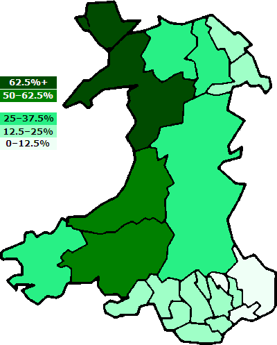 Welsh speakers are found more in the west than the east, and more in the north than the south. Therefore, not surprisingly, the heaviest concentration of Welsh speakers is in the north-west, in Angelsey (Ynys Môn in Welsh) and Gwynedd.